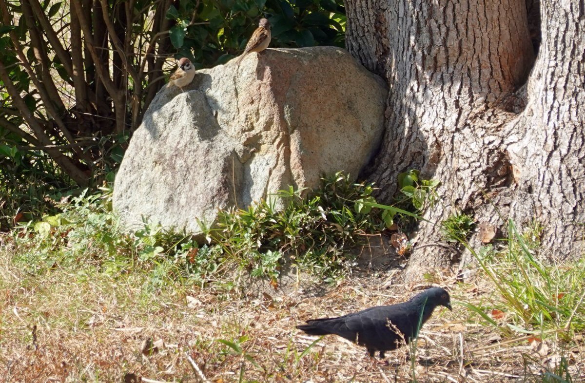ひとまち公園はハト、スズメのほかにも鳥たちがやってくる